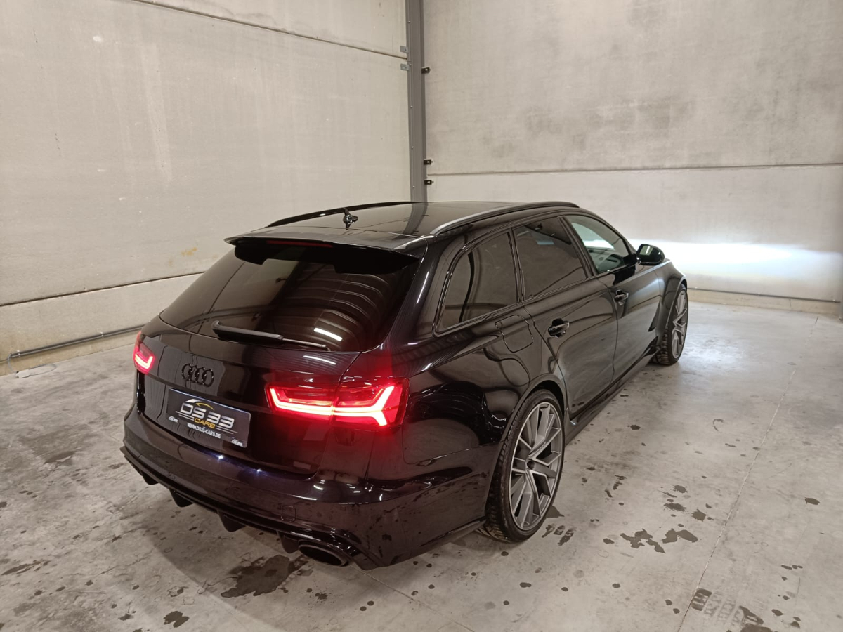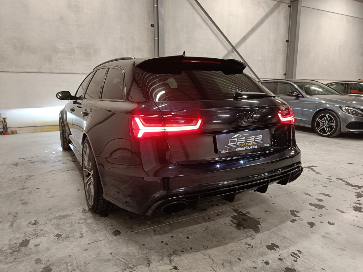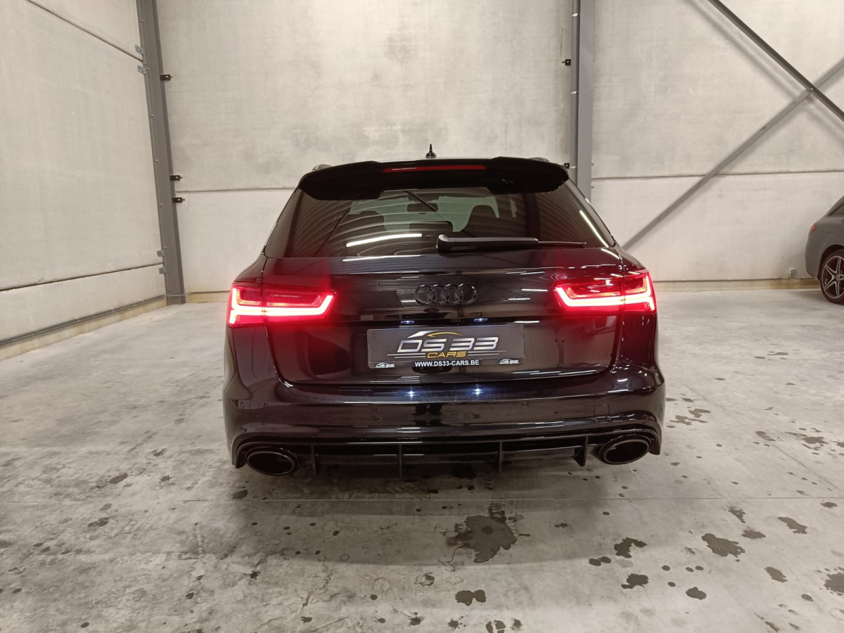 Zoals alle RS6-en is ook deze auto rijkelijk uitgerust met opties. Deze auto onderscheidt zich echter van andere vergelijkbare auto's door zijn toegevoegde opties. Hij heeft namelijk Keramische remmen, Soft close, Keyless Entry, Head-up display, Panoramisch dak, 3D Bang & Olufsen soundsystem, Verwarmde voor + achterbank, Adaptieve cruise control, Carbon pack, 21 inch velgen, Ambi light, Elektrisch verstelbare zetels, Donkere ramen achteraan, Rolgordijnen achteraan, Digitale airco in 4 zones, 360 camera, Parkeersensensoren voor + achter, Dodehoekdetectie, ...