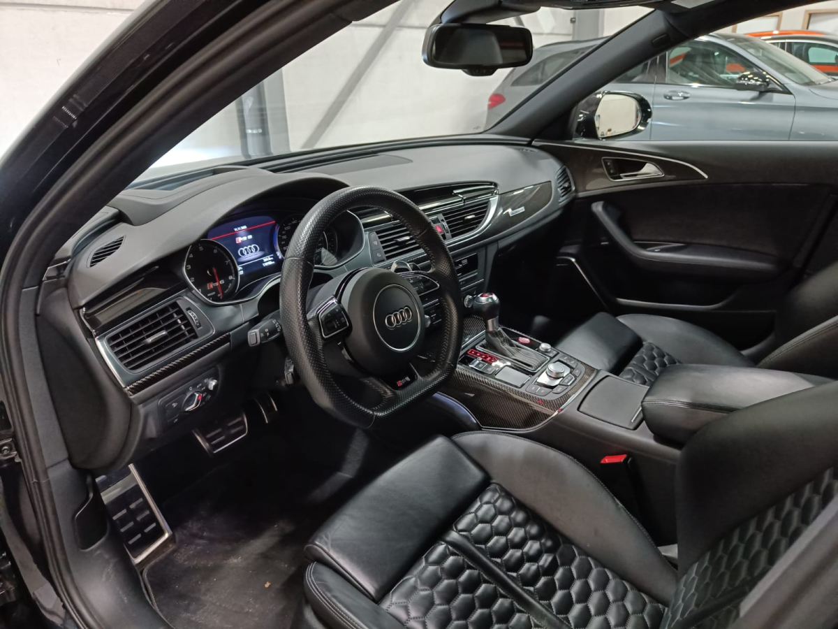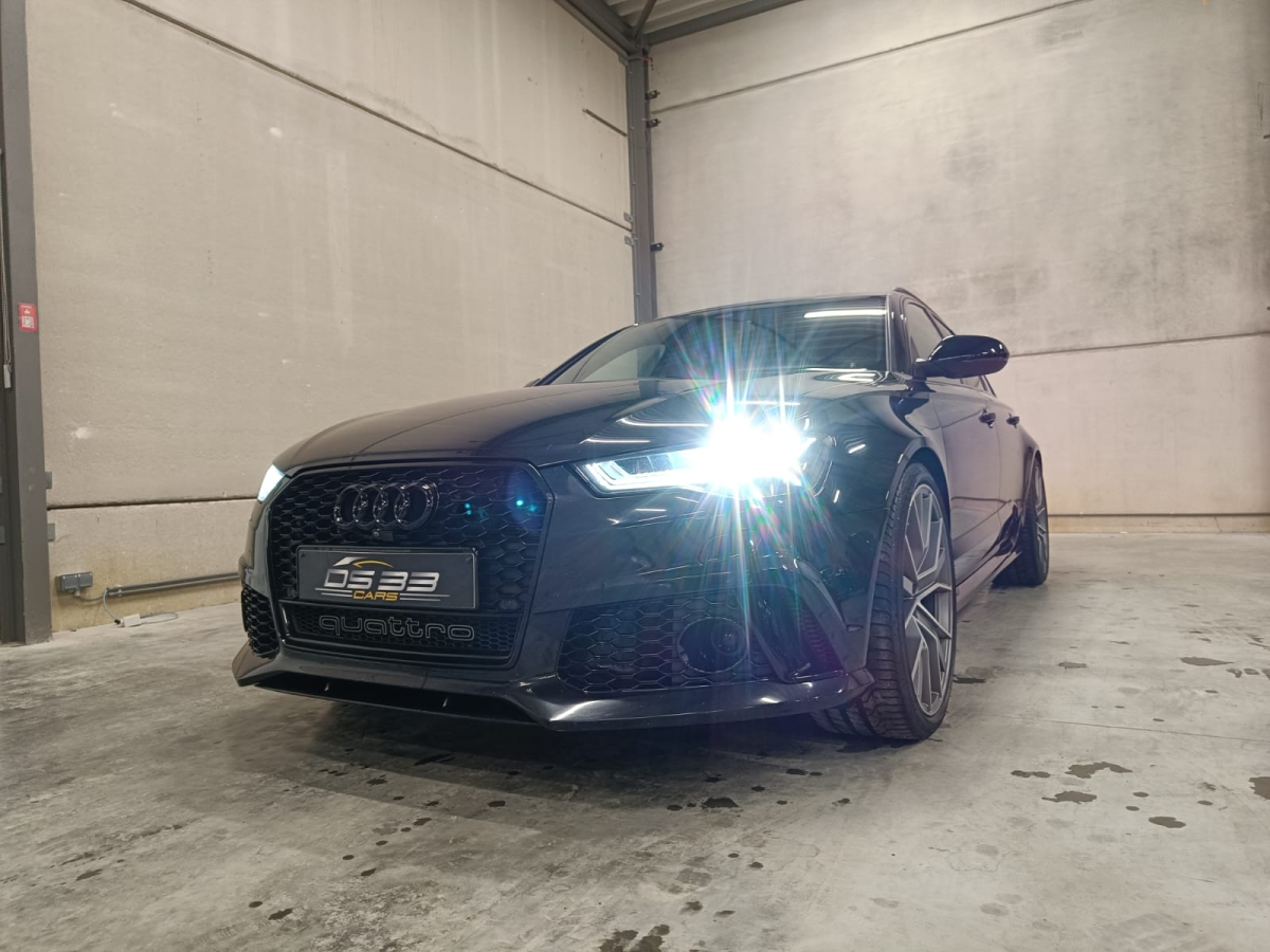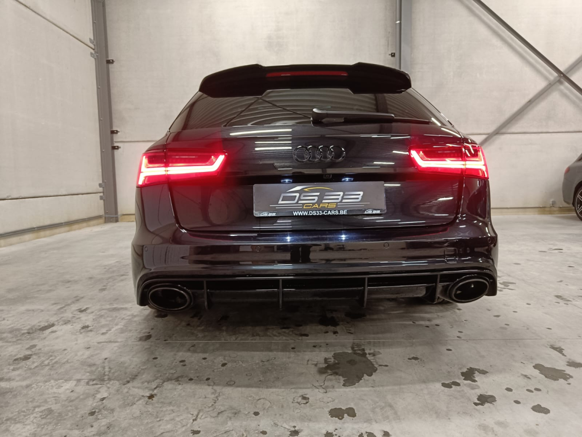 Zoals alle RS6-en is ook deze auto rijkelijk uitgerust met opties. Deze auto onderscheidt zich echter van andere vergelijkbare auto's door zijn toegevoegde opties. Hij heeft namelijk Keramische remmen, Soft close, Keyless Entry, Head-up display, Panoramisch dak, 3D Bang & Olufsen soundsystem, Verwarmde voor + achterbank, Adaptieve cruise control, Carbon pack, 21 inch velgen, Ambi light, Elektrisch verstelbare zetels, Donkere ramen achteraan, Rolgordijnen achteraan, Digitale airco in 4 zones, 360 camera, Parkeersensensoren voor + achter, Dodehoekdetectie, ...