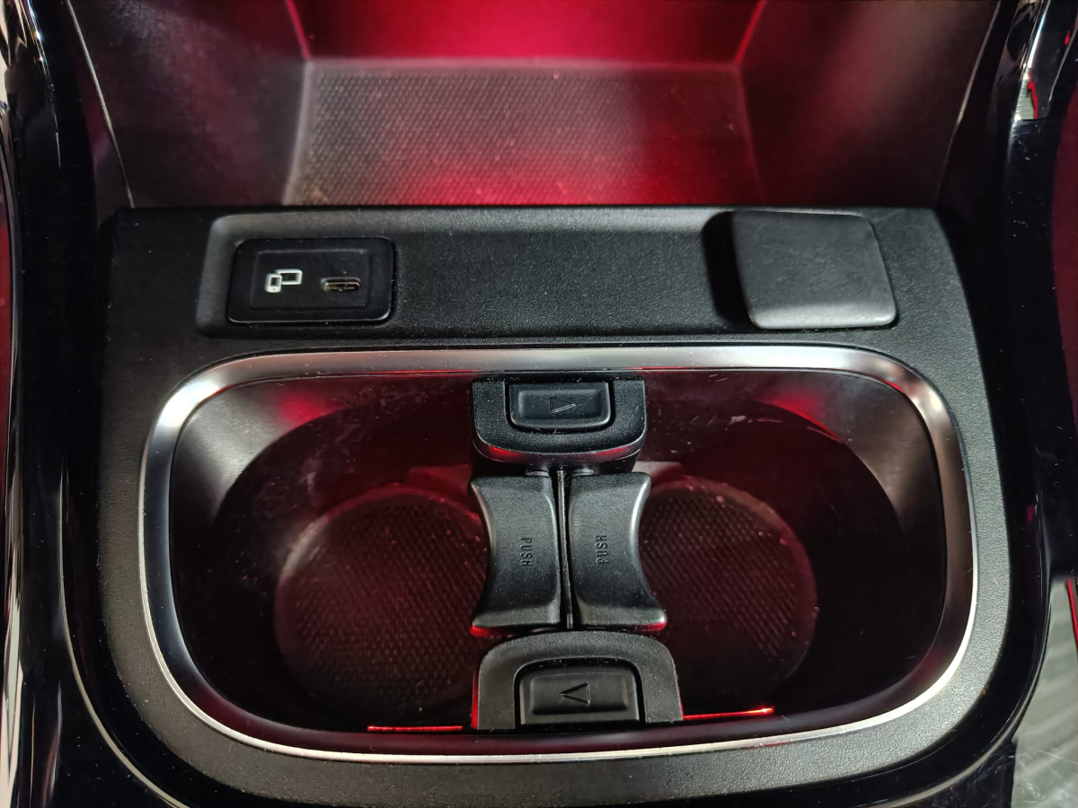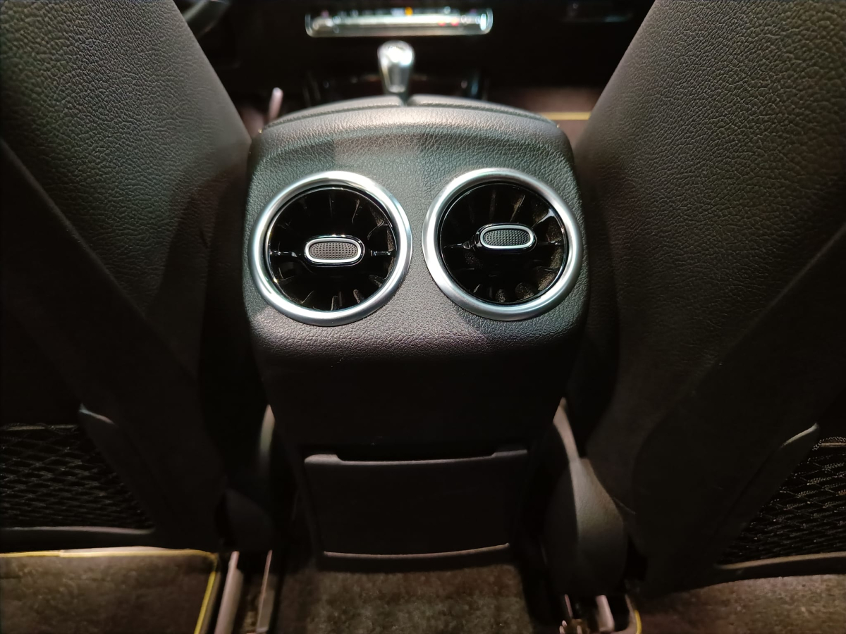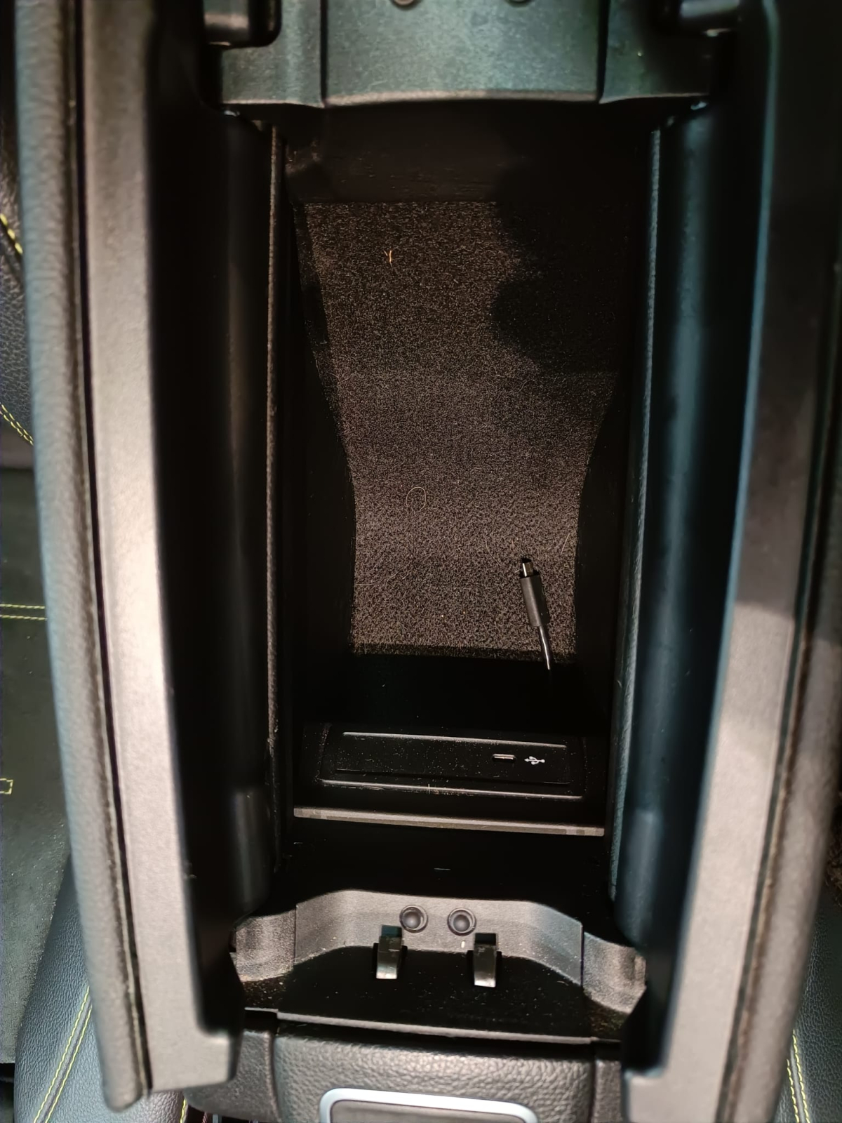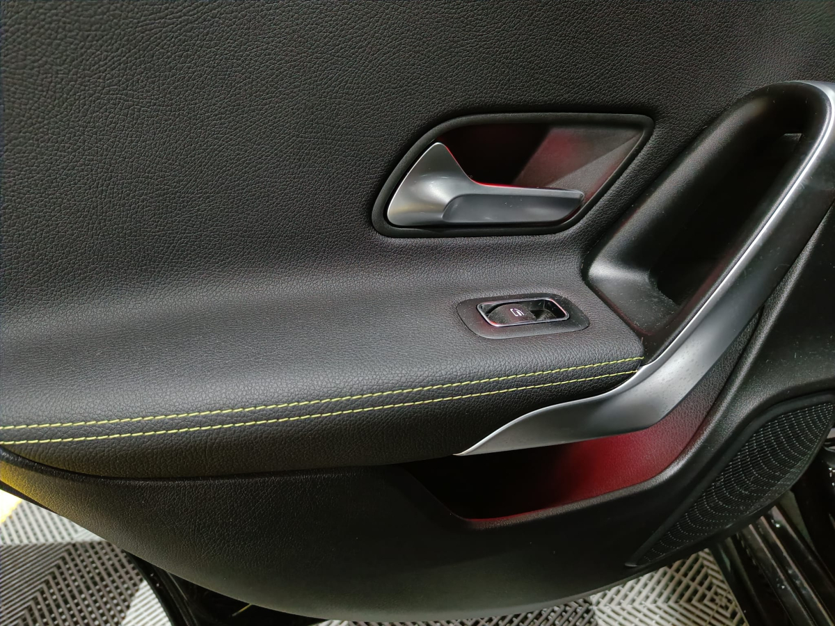 Lederen dashboard met geel stiksels
